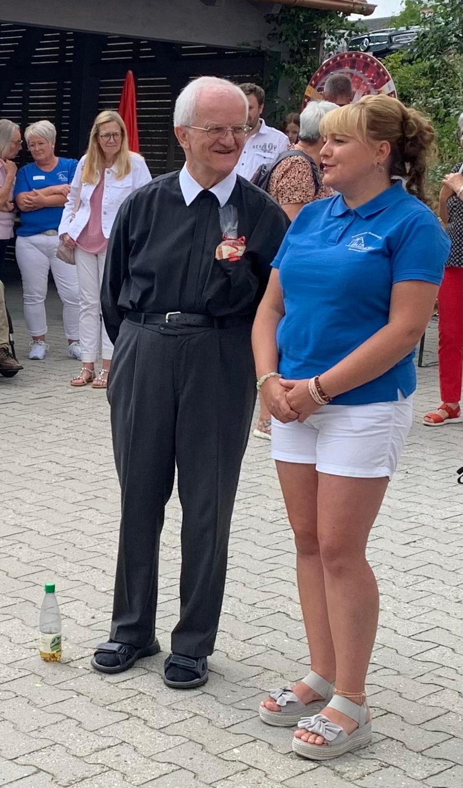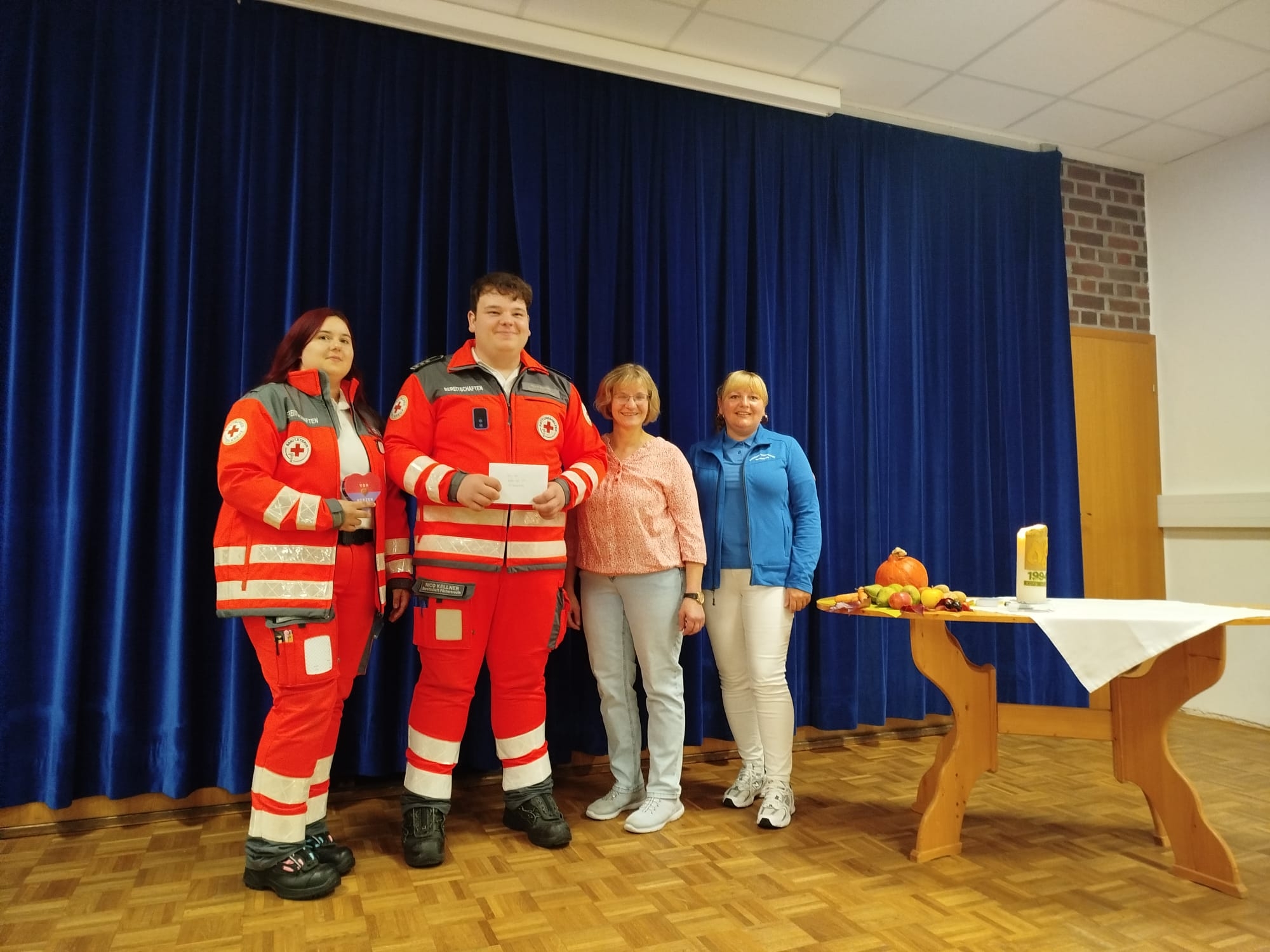 Für uns, die Ambulante Krankenpflegestation der Pfarrei St. Georg, gab es eine freudige Überraschung: Einen Scheck über 600 Euro überreichte uns Stefanie Hetz, die Vorsitzende des Katholischen Frauenbundes, in Anwesenheit von Stadtpfarrer Josef Häring. Am gut besuchten Tag der offenen Tür zu unserem 40-jährigen Bestehen am 22. Juli hatte der Frauenbund den Kaffee- und Kuchenverkauf organisiert. Nun spendeten sie den gesamten Erlös an uns. Unser Geschäftsführer Rudi Kneidl betonte den vorbildlichen Zusammenhalt in unserer Pfarrei. Allen kirchlichen Vereinen möchten wir für ihre großartige Unterstützung des Festes herzlich danken.